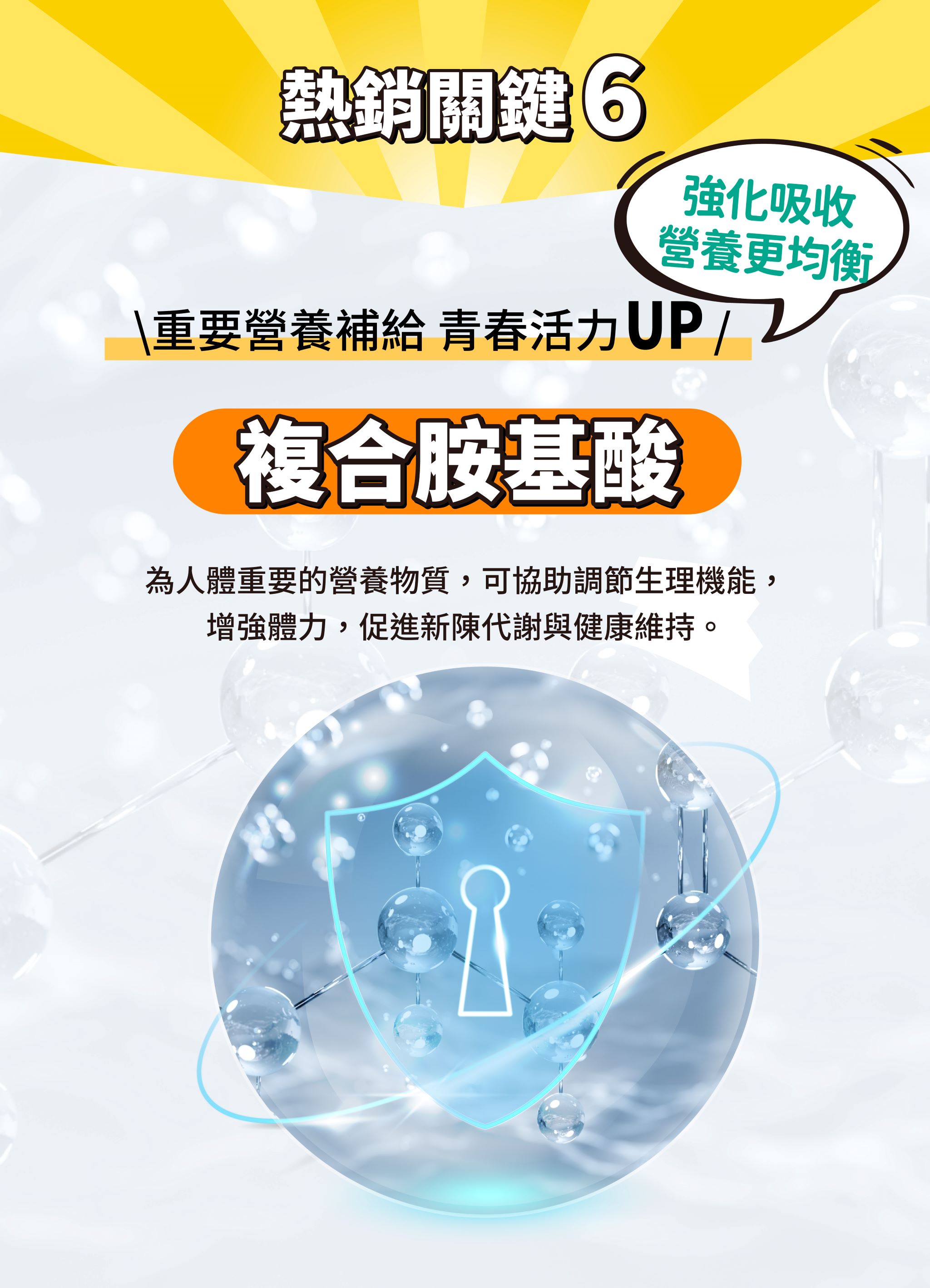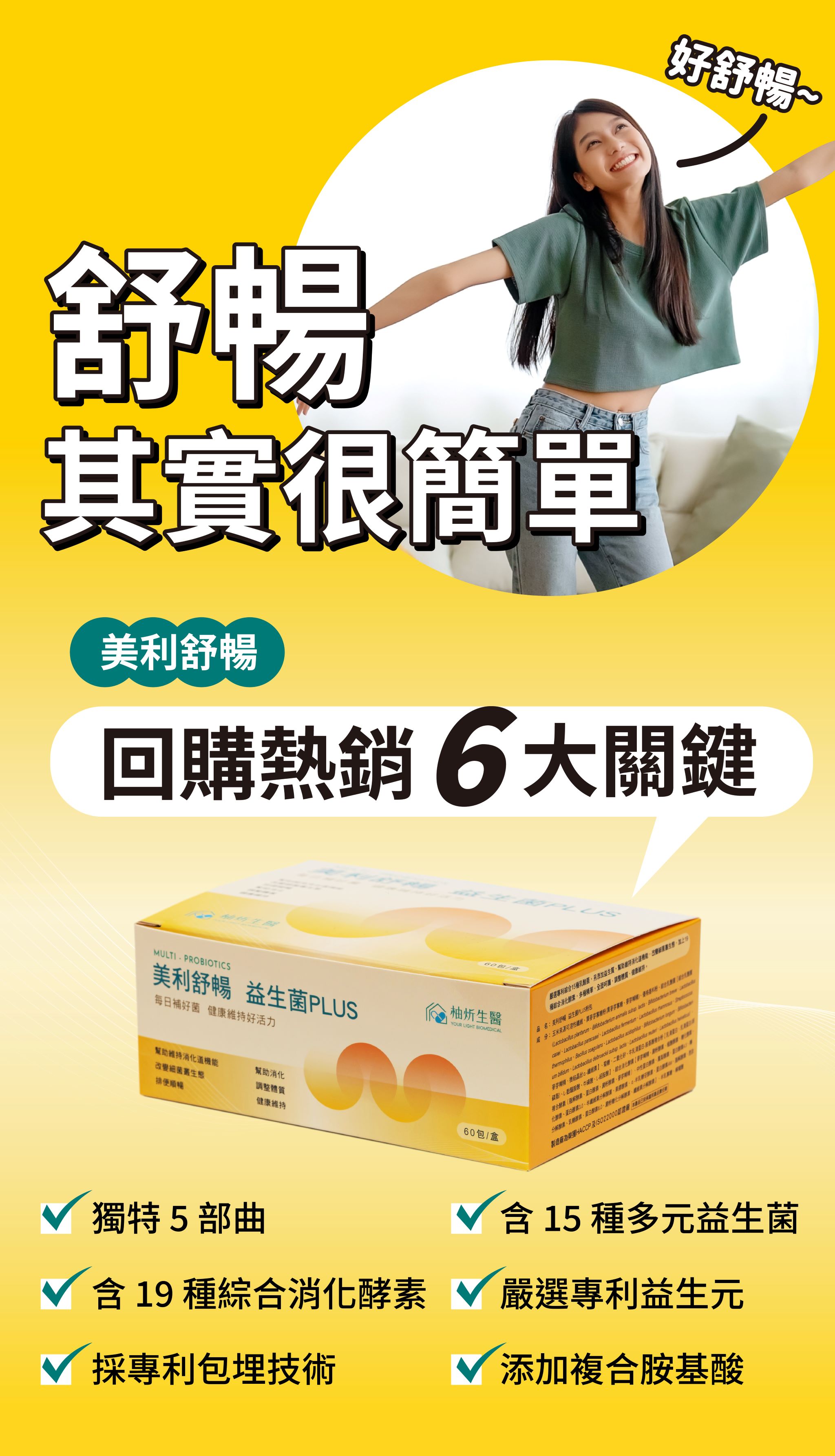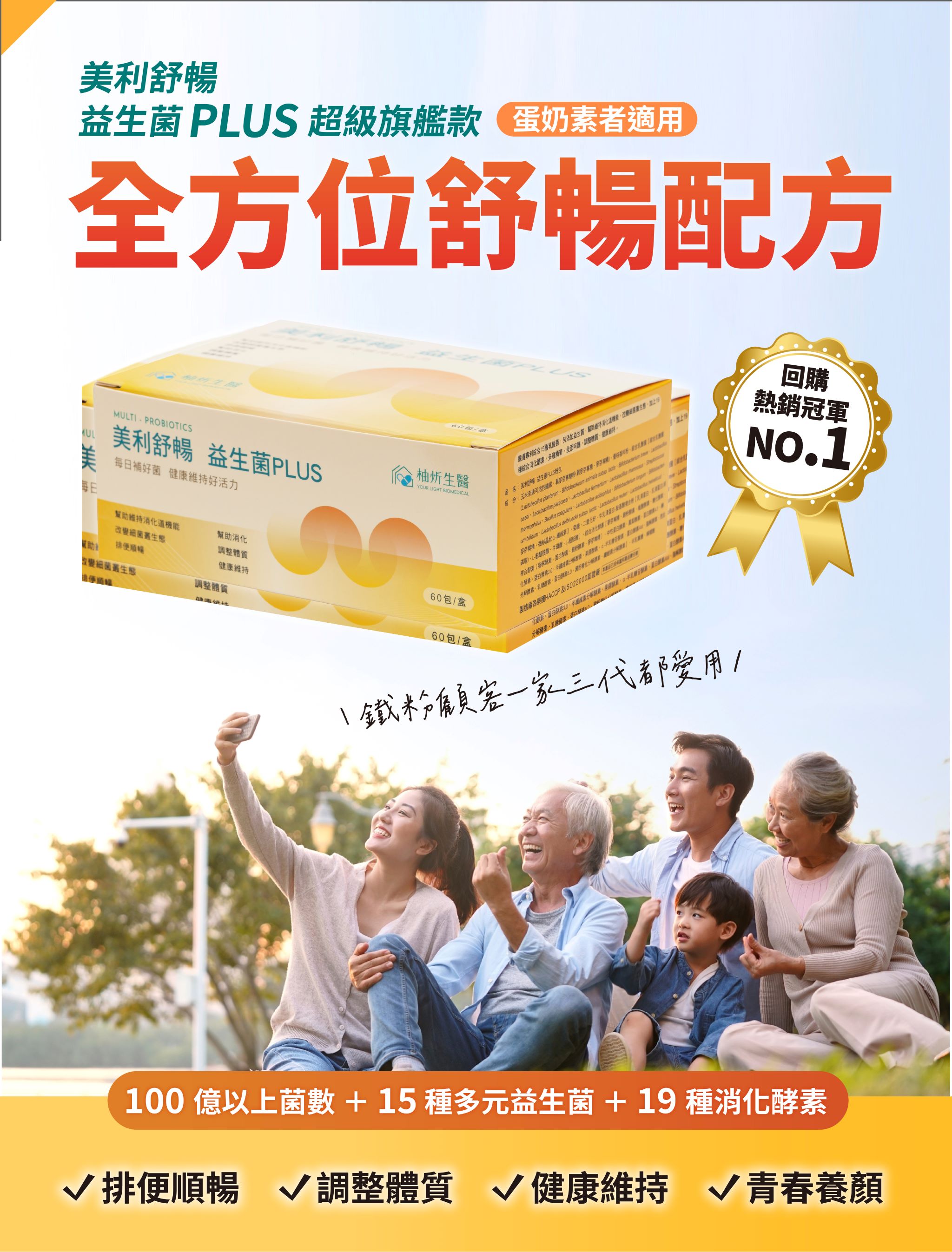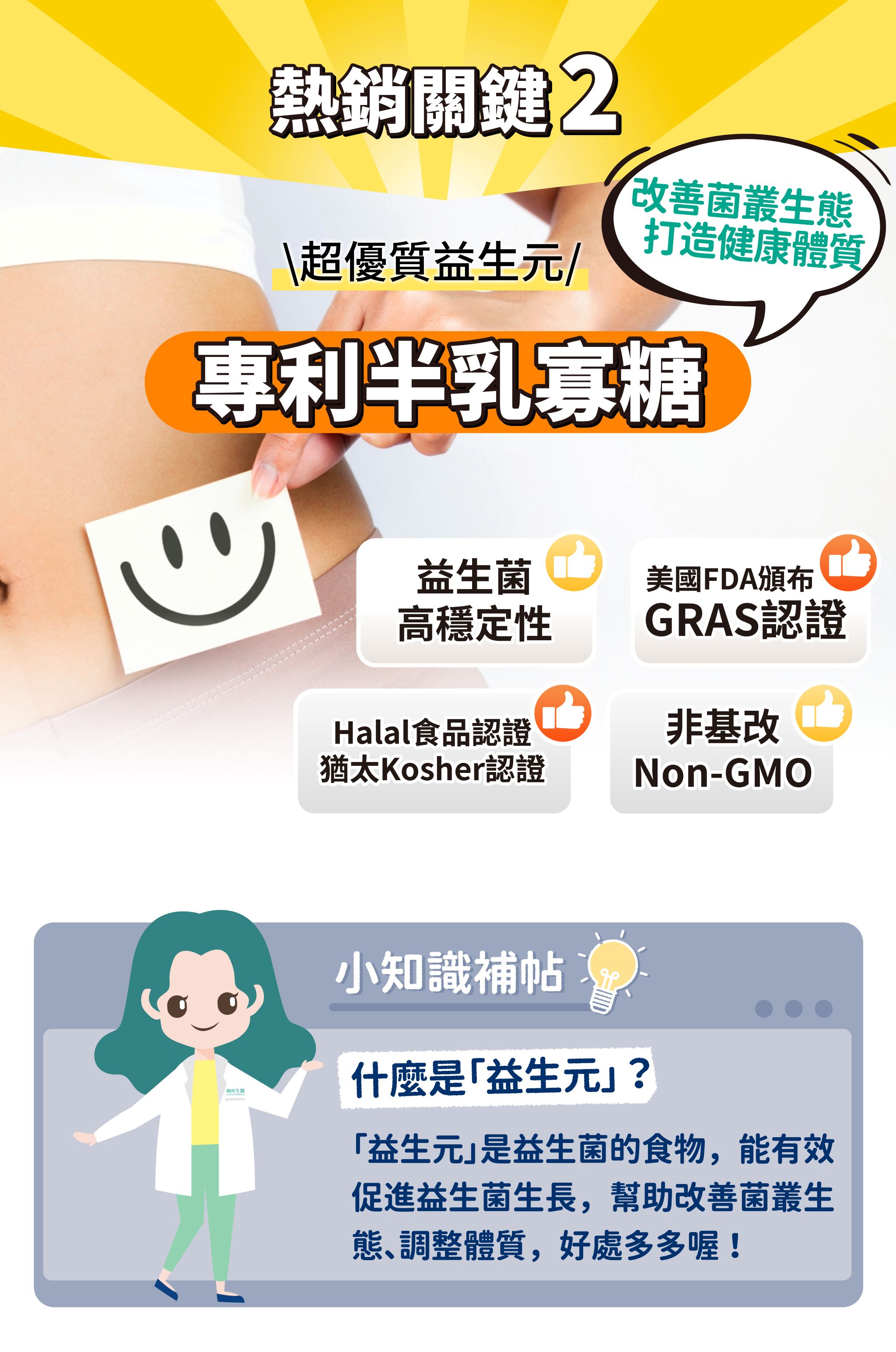 成分:玉米來源可溶性纖維、異麥芽寡醣粉(異麥芽寡醣、麥芽糊精)、優格香料粉、綜合乳酸菌【綜合乳酸菌(Lactobacillus plantarum、Bifidobacterium animalis subsp. lactis、Bifidobacterium breve、Lactobacillus casei、Lactobacillus paracasei、Lactobacillus fermentum、Lactobacillus rhamnosus、Streptococcus thermophilus、Bacillus coagulans、Lactobacillus acidophilus、Bifidobacterium longum、Bifidobacterium bifidum、Lactobacillus delbrueckii subsp. lactis、Lactobacillus reuteri、Lactobacillus helveticus) 、麥芽糊精、微結晶狀 α-纖維素】、菊糖、二氧化矽、牛乳清蛋白-胺基酸複合粉【乳清蛋白、乳清蛋白(卵磷脂)、L-麩醯胺酸、牛磺酸、L-組胺酸】、綜合消化酵素【麥芽糊精、澱粉酵素、植酸酵素、糖化酵素、複合酵素(脂解酵素、蛋白酵素、澱粉酵素、麥芽糊精)、中性蛋白酵素、鳳梨酵素、蛋白酵素4.5、轉化酵素、蛋白酵素3.0、半纖維素分解酵素、果膠酵素、α-半乳糖苷酵素、蛋白酵素AM、脂解酵素、胜肽分解酵素、乳糖酵素、蛋白酵素6.0、澱粉糖化分解酵素、纖維素分解酵素】、半乳寡糖、檸檬酸