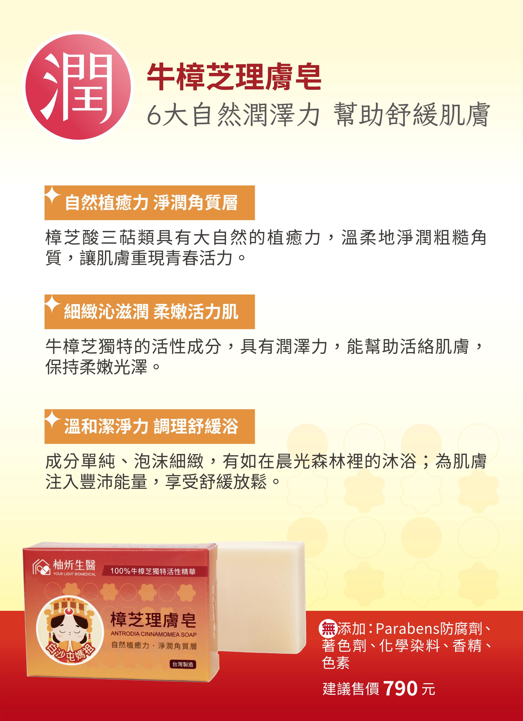 注意事項: (1)請勿將產品塗抹於傷口、紅腫、濕疹、潰爛及皮膚異常位置。